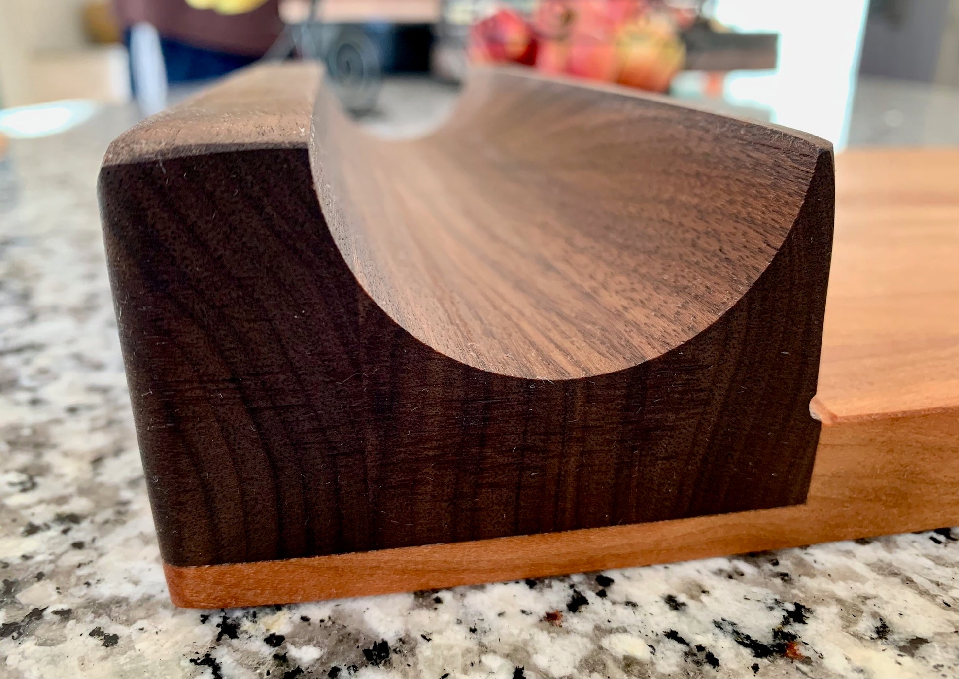 This walnut and cherry cracker tray is perfect for any occasion! The exquisite natural wood graces your kitchen with an organic elegance, and the scoop feature gives you plenty of space for an array of crackers.